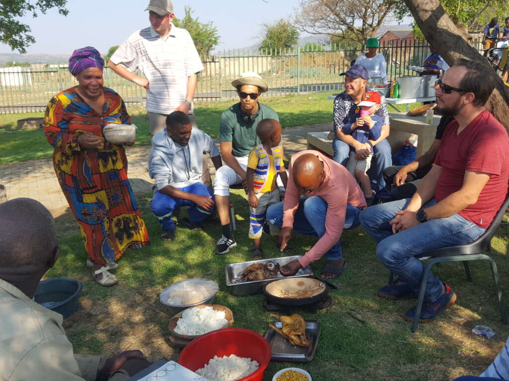 Wir als Melusi waren dieses Jahr zu einer Feierlichkeit eingeladen, die von einer Familie aus unserer Gemeinde veranstaltet wurde. Es gab traditionelle Tänze, Trachten und Gesänge und natürlich auch Essen. Serviert wurde auf traditionelle Art und Weise – das Fleisch, vor allem Ochsenkopf, nur für die Männer. Für die Frauen gab es dann so eine Art Bratensoße und Beilage. Gegessen wurde getrennt. War interessant, aber auch gewöhnungsbedürftig 😊