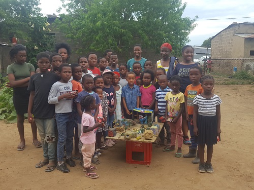 Sie werden von Melusi mit dem Material ausgestattet und halten dann die Kinderstunde! Danach gibt es oft noch eine Kleinigkeit zum Essen und Saft.