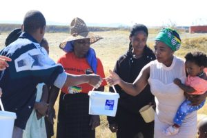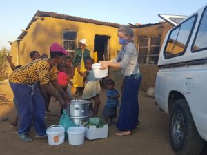 Werktags wurden täglich Trips in die umliegenden Armutsviertel (Townships) von Dundee unternommen, um den Menschen das Evangelium zu bringen, Beziehungen aufzubauen und Lebensmittelpakete für Bedürftige zu verteilen. Enthalten waren Gemüse aus dem eigenem Garten, Maismehl und Brot. Manchmal wurden auch Kleidung und Decken ausgegeben, je nach Verfügbarkeit. Während dieser „Outreaches“ wurden Bibelstunden für die Erwachsenen und Kinderprogramm für die Kinder gehalten. So sah dieser Arbeitsbereich vor dem Lockdown aus und hat die Nachmittage ausgefüllt. Jetzt hat das Ausgeben der Lebensmittelpakete in den Townships, mit Sondergenehmigung, dazu geführt, dass wir wieder mehr ausserhalb von Melusi, unter den Armen der Gesellschaft, dienen können!